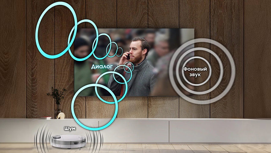 Технология улучшения звука на базе AI позволяет усилить звук речи актеров, отфильтровывая речь от остальной звуковой сцены. Наслаждайтесь непревзойденным качеством звука с четкими диалогами не смотря на посторонние шумы.