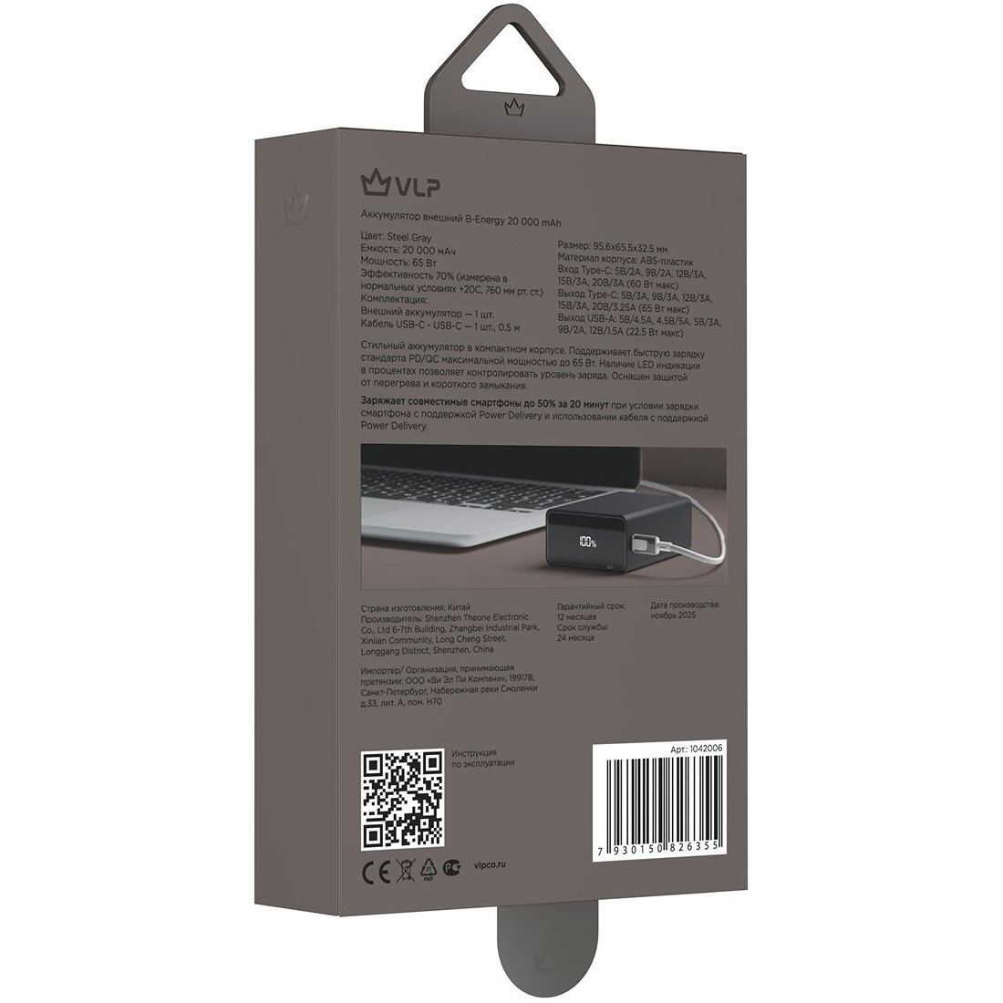 Внешний аккумулятор VLP B-Energy емкостью 20 000 мАч удобно брать с собой на работу, учебу или в путешествие. Он легкий, компактный, не занимает много места, позволяет зарядить телефон или другое устройство даже там, где нет доступа к электричеству. Пауэрбэнк подходит для зарядки смартфонов, планшетов, смарт-часов, наушников и других гаджетов, которые заряжаются через кабель USB.