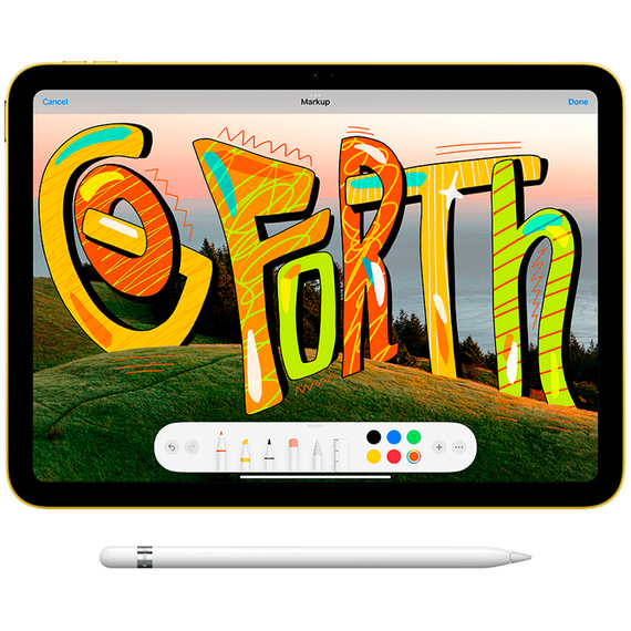 Стандартный стилус Apple Pencil первого поколения отлично сочетается с новым iPad 10. Правда, подключить стандартным способом его не выйдет, здесь понадобится переходник с USB Type-C разъема на Lightning.