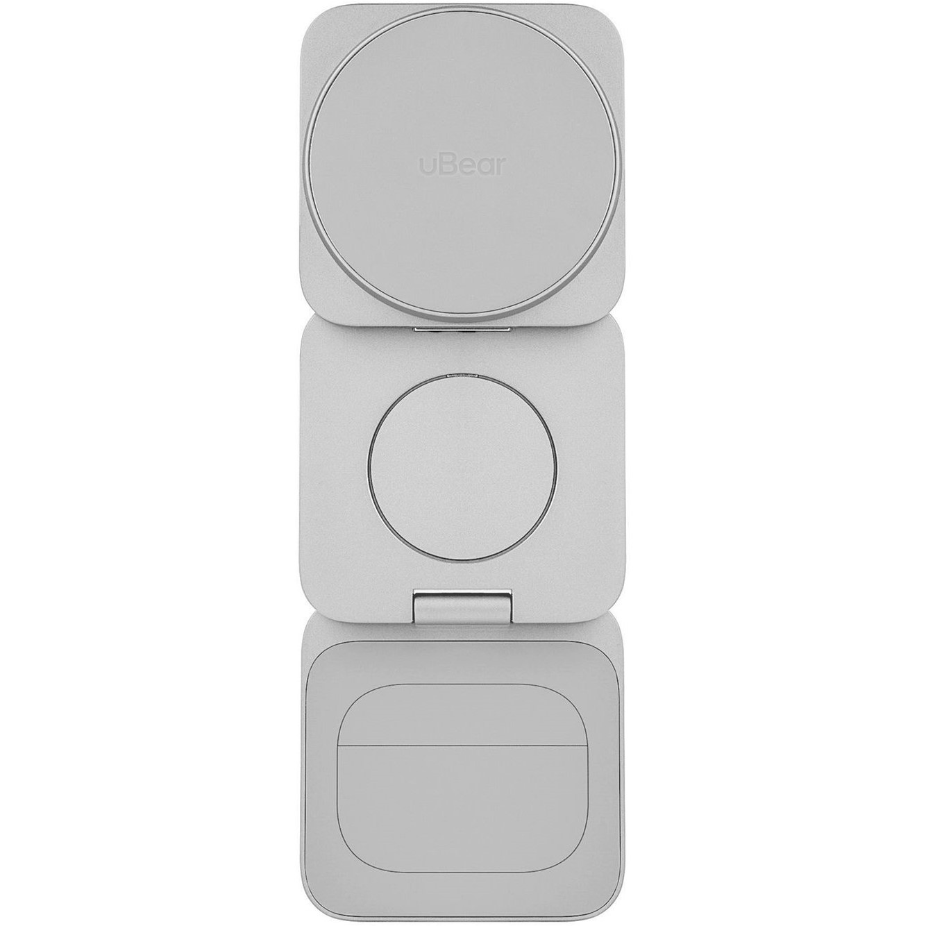 Оригинальная складная конструкция продумана до мелочей. Одним легким движением полноценная док-станция для трех устройств трансформируется в ультракомпактный девайс, который легко взять с собой.