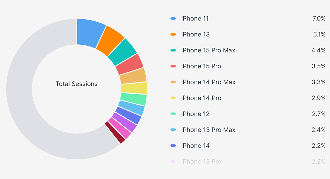 Более того, это даже не самый доступный iPhone. Apple предпочитает игнорировать миллионы iPhone прошлых поколений, которые всё ещё активно используются. Например, статистика приложения «РосДомофон» (более 1 млн установок) показывает, что большинство пользователей в России используют модели старше двух лет.