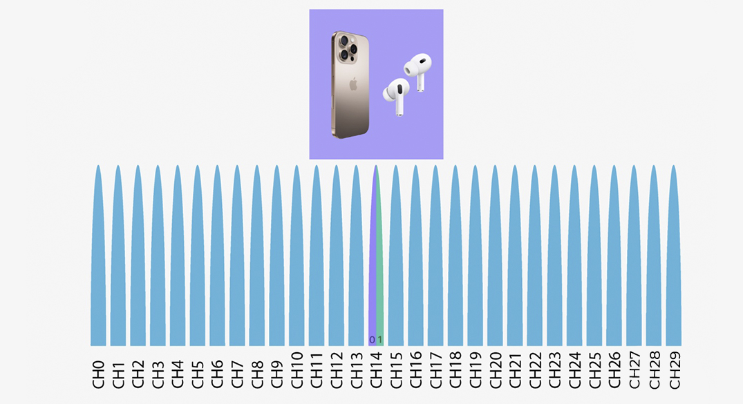Смартфон отправляет данные на наушники 1600 раз в секунду, каждый раз меняя частоту на одну из 79 доступных.