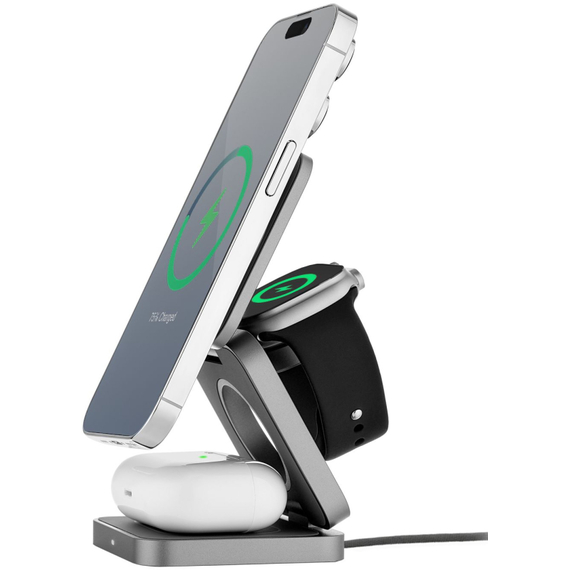 Заряжайте до трёх устройств одновременно: смартфон + наушники + Apple Watch с возможностью быстрой зарядки. Функция Smart Power Regulation идентифицирует устройство и включает режим зарядки, подходящий именно его аккумулятору (совместимо с устройствами Apple).
