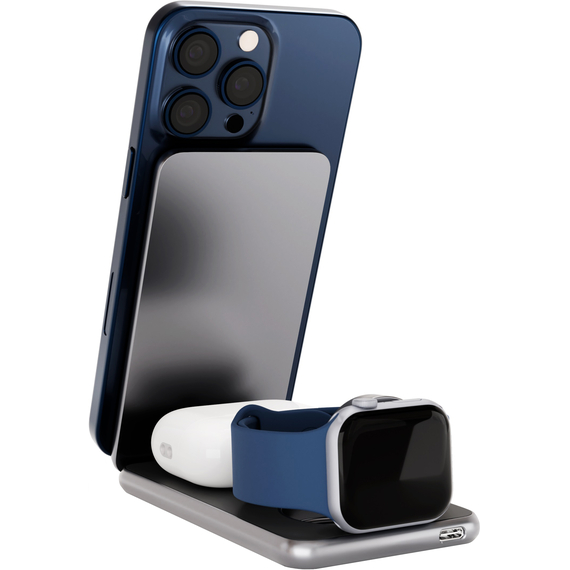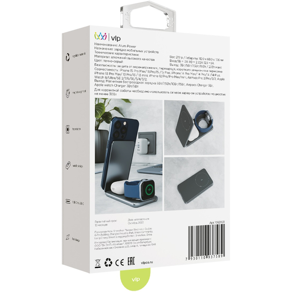 Alum Power – стильное и инновационное решение для зарядки Ваших гаджетов. Это беспроводное зарядное устройство создано для долгой и надежной работы. Его корпус выполнен из высококачественного алюминия, что придает ему роскошный внешний вид, а также обеспечивает надежность и прочность. Устройство имеет инновационный складной дизайн, который позволяет использовать его как в сложенном, так и в разложенном виде. Складной дизайн и компактные размеры делают его идеальным для использования в дороге или в офисе. Его размер сравним с размером iPhone, что делает его удобным и портативным аксессуаром. Alum Power предоставляет возможность заряжать до трех устройств одновременно без подключения множества кабелей. Это идеальное решение для зарядки вашего смартфона, планшета и даже умных часов. Зарядное устройство обеспечивает быструю зарядку, позволяя Вам быстро восполнить заряд батареи и оставаться подключенным в любое время. С Alum Power Вы получите стильное и многофункциональное зарядное устройство, которое сочетает в себе выдающуюся производительность, прочность и удобство использования. Больше не надо беспокоиться о зарядке Ваших устройств – наше зарядное устройство справится с любой задачей за Вас.