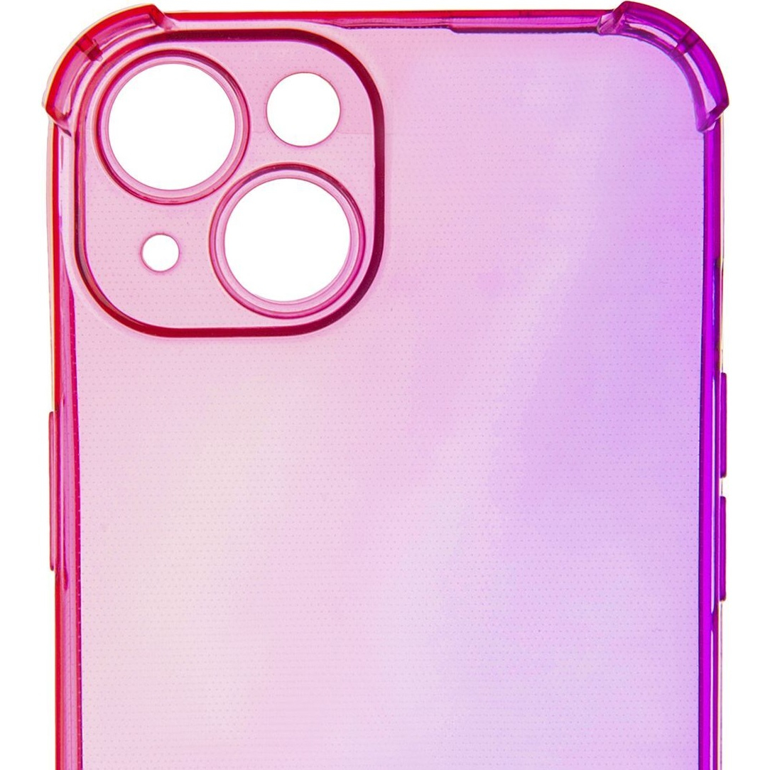 Этот противоударный чехол изготовлен специально под модель телефона Apple iPhone 14 (Эпл Айфон 14), благодаря чему плотно надевается, соответствуя всем изгибам, разъёмам и кнопкам устройства. Главная его особенность заключается в усиленных углах: между углами чехла и телефона образуется воздушная подушка, амортизирующая при ударах и падениях. Усиленные углы также выступают над дисплеем и модулем камер, тем самым дополнительно их защищая. Также камеры и экран окружают небольшие бортики, уменьшающие физическое воздействие на них, ещё больше снижая вероятность появления сколов и царапин. Сам чехол сделан из термополиуретана: упругого, гибкого и износостойкого материала. На заднюю поверхность чехла нанесена противоразводная сетка: благодаря ей чехол не прилипает к корпусу телефона. Иногда не хочется выбирать между чехлом красивым и чехлом защищающим: тогда отличным выбором становится градиентный противоударный чехол. Его прозрачная поверхность нежно переливается двумя красивыми оттенками, эстетично подчёркивая заднюю панель телефона.