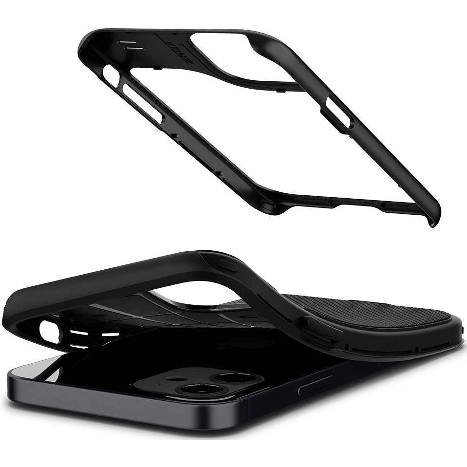 Дизайн Чехол-накладка Spigen Hybrid NX для iPhone 12 mini включает в себя жесткий поликарбонатный бампер со всеми необходимыми коммуникационными вырезами и гибкую накладку из термополиуретана. Такой симбиоз материалов обеспечит сохранность вашего смартфона даже при падении с метровой высоты. Аксессуар легко устанавливается и надежно фиксируется на корпусе телефона.