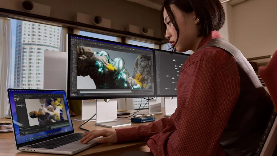 Studio Display XDR спроектирован как универсальная станция для самых разных индустрий, поддерживая расширенный спектр эталонных режимов — от HDR и цифрового кино до специфических стандартов вещания, таких как PAL и SECAM. Специально для медицины внедрено приложение для калибровки по стандарту DICOM, обеспечивающее ювелирную точность передачи оттенков серого при анализе снимков. Художники по визуальным эффектам и аниматоры оценят возможность визуализировать материалы и текстуры с невероятной достоверностью, в то время как адаптивная синхронизация (47–120 Гц) ускоряет процесс 3D-моделирования. Это программно-аппаратное совершенство позволяет монитору мгновенно адаптироваться под требования конкретного проекта, выступая в роли эталонного мерила качества для профессионалов любого профиля.