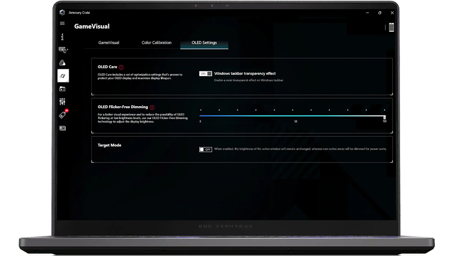 Armoury Crate – это ваш командный центр, в котором можно корректировать настройки, отслеживать температуры или персонализировать свой ноутбук. Благодаря мониторингу в реальном времени вы можете наблюдать, чем занимается видеокарта, центральный процессор и память. Технология Aura Sync позволяет настраивать цвета RGB-подсветки отдельно для каждой игры. При помощи профилей вентиляторов и мощности вы можете на лету изменять шумовые, энергетические и тепловые характеристики ноутбука, а эксклюзивные акции для геймеров помогут вам пополнить свою библиотеку.