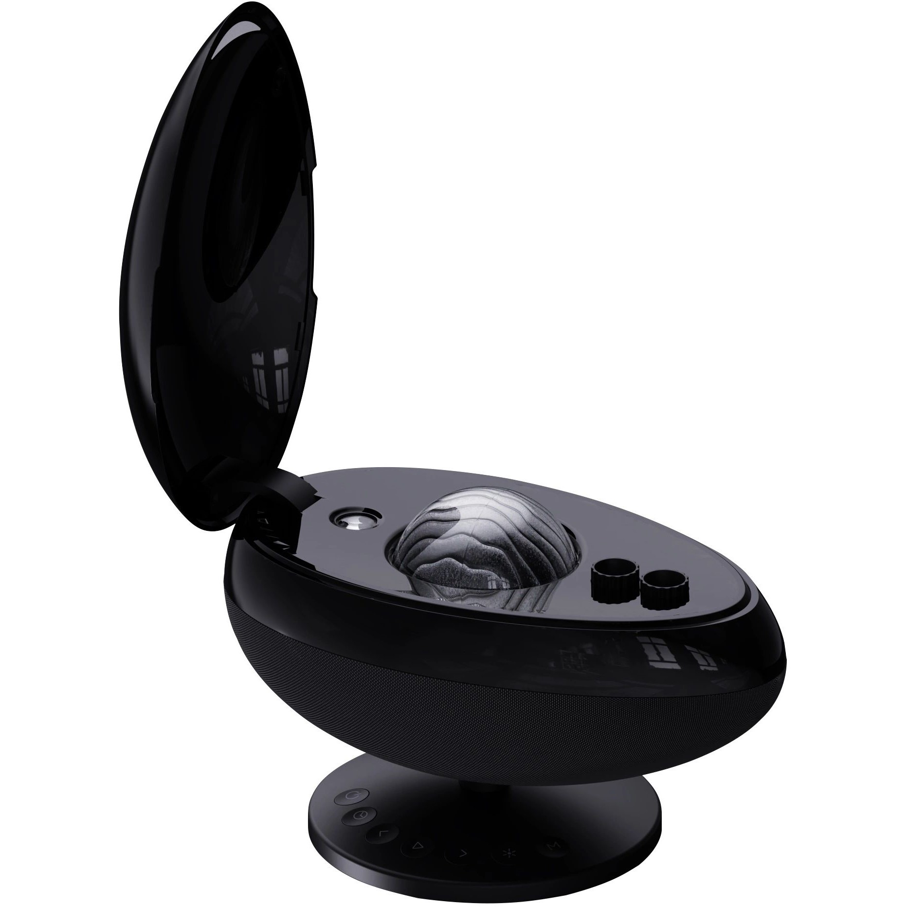 Футуристичный дизайн проектора Wanbo Galaxy Light не только привлекает внимание, но и позволяет удобно регулировать его положение вверх и вниз. Эта функция обеспечивает гибкость установки, позволяя адаптировать угол проекции под любые потребности и условия освещения.