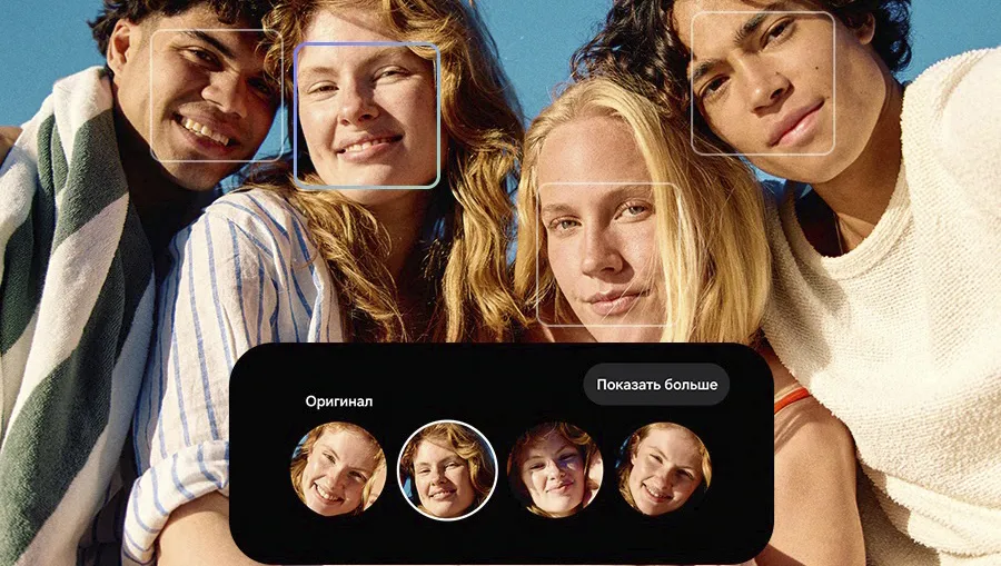 Забудьте о неудачных групповых фото, где кто-то случайно моргнул или отвернулся — функция «Лучшее лицо» превращает каждый совместный кадр в идеальное воспоминание. Активировав режим «Анимированное фото», смартфон делает серию снимков, из которых ИИ позволяет выбрать наиболее удачные выражения лиц для каждого участника и совместить их в одном финальном изображении. Теперь на ваших фотографиях с друзьями и близкими будут только искренние улыбки и открытые взгляды. Это уникальный инструмент, который спасает важные моменты, гарантируя, что на коллективном снимке каждый будет выглядеть великолепно.