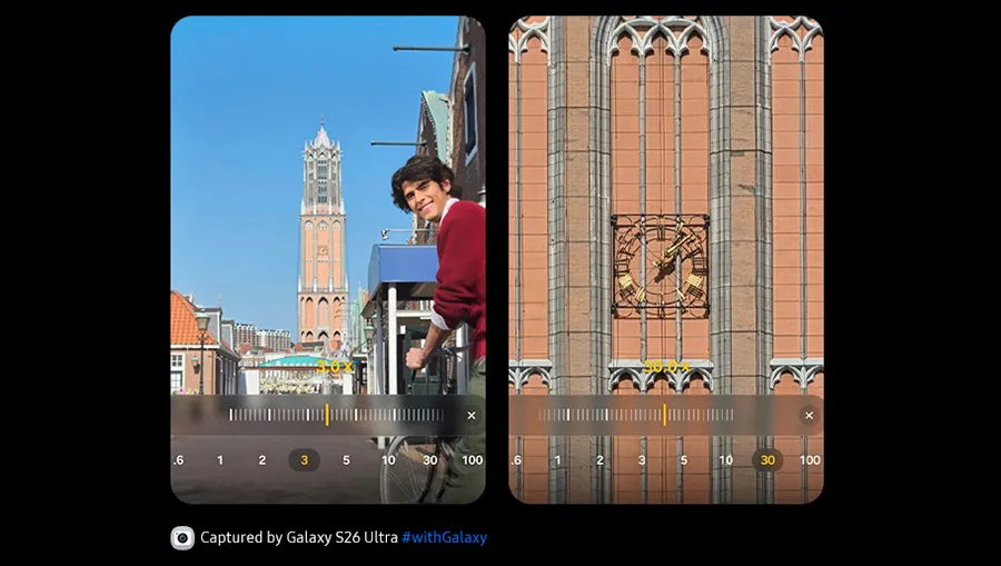 Функция Space Zoom в Galaxy S26 Ultra позволяет увидеть то, что скрыто от обычного взгляда, предлагая диапазон от 1-кратного оптического приближения до ошеломляющего 100-кратного цифрового зума. Благодаря поддержке искусственного интеллекта, смартфон мгновенно стабилизирует изображение на больших дистанциях, предотвращая смазывание кадра и интеллектуально достраивая четкость объектов. Теперь вы можете запечатлеть мельчайшие архитектурные детали, спортивные моменты с дальних трибун или красоту природы, оставаясь на значительном удалении, но получая при этом чистый, детализированный и качественный снимок.